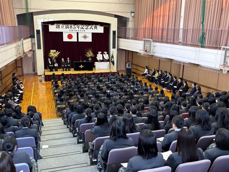 2025.11.04 火 未分類創立満85年記念式典を挙行しました2025年10月30日(木)、本校の体育館兼講堂にて、創立満85年記念式典を挙行しました。式典には、在校生・教職員のほか、ご来賓の方々にもご参列いただき、学校の歴史と歩みを振り返る厳粛かつ温かいひとときとなりました。85年という節目を迎えられたことは、本校関係者はもちろんのこと、地域の皆様の支えがあったからこそです。これからも本校は「三つの誓い」のもと、人間的にも豊かな女性へと成長するような教育に努めてまいります。